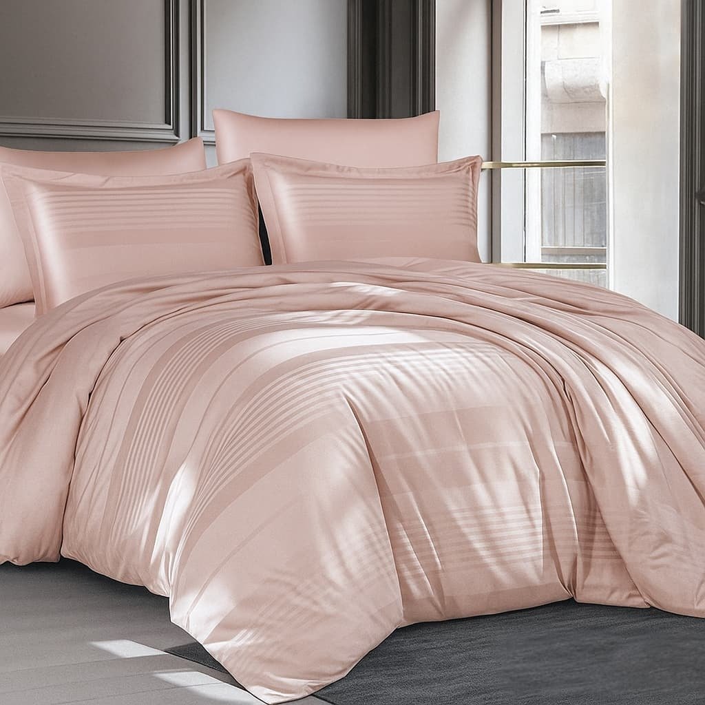 مفرش فندقي مقلم بخامته ذات الملمس الناعم يحتوي على 6 قطع يتناسب مع اجواء الصيف الحارة بسبب خامته الخفيفة والباردة.