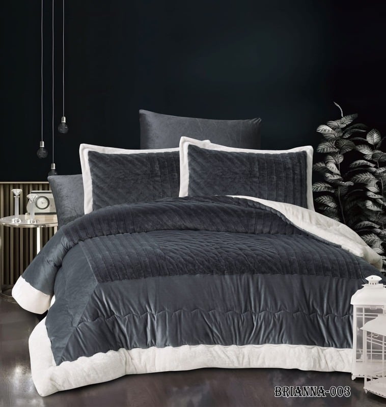 مفرش شتوي بخامته ذات الملمس الناعم يحتوي على 6 قطع يتناسب مع اجواء الشتاء الباردة بسبب خامته التي تحفظ الحرارة لتوفر لك الدفء الذي تحتاجه اثناء الليل لنوم عميق وتمتاز بتوفر الأبعاد المحددة ملاءمة مثالية للسرير بالإضافة إلى الشرشف المغاط الذي يوفر حماية إضافية للفراش.